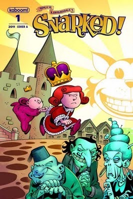Roger Langridge's Snarked! Nº 1. "Acompañen a Roger Langridge (guión, dibujos y portada regular) en este viaje a lo que Lewis Carroll escondió bajo la alfombra de sus clásicos La Morsa y el Carpintero, Alicia a través del espejo y La caza del Snark, creando un nuevo mundo de humorosa grandeza. Sigan a la Princesa Escarlata y a su hermano Rusty mientras engañan a los villanos asesores reales y se unen a los infames Morsa y Carpintero para partir en busca de su padre, el Rey Rojo, que ya lleva seis meses perdido en alta mar. Se trata de un evento editorial que no querrás perderte, con portadas interconectadas a cargo de Langridge y Chris Samnee (limitadísimo homenaje a Thor: The Mighty Avenger).