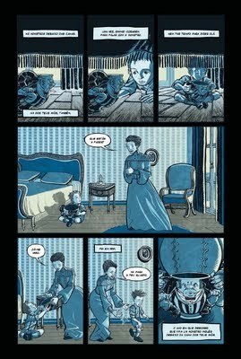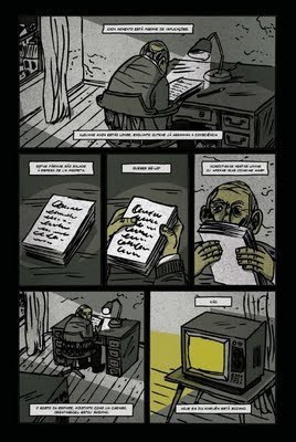 Pero la clave, el hallazgo, de Azul -Frau K. y todos nosotros, agradecidos- es haber bajado todo este enredo a la historieta. El discurso de Berni es más Berni que nunca cuando se convierte en su signo, en su esencia, en su mejor caricatura. De este modo los argumentos se vuelven piezas de un rasti gráfico que bailotea entre la plástica y la historieta con desparpajo y frescura, recordándonos que la historieta puede ser muchas otras cosas además de las que suponemos.