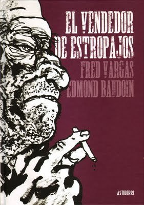 El vendedor de estropajos. Astiberri. "Edmond Baudoin (dibujos) retrata el París de Fred Vargas (guión), en esta nueva colaboración entre la novelista y el dibujante tras Los cuatro ríos, con un nuevo caso del comisario Adamsberg. Un asesinato trastorna el día a día de Pi, vagabundo y, a ratos, vendedor de estropajos. Interrogado como testigo, conoce a Adamsberg, un comisario con métodos desconcertantes, que prefiere mantener un largo diálogo con el vagabundo, antes que los métodos habituales de la policía. La verdad sobre el caso se desvela poco a poco, al mismo tiempo que se dibuja el retrato de un hombre roto por la vida. Tras su colaboración en Los cuatro ríos, el pincel de Edmond Baudoin vuelve a ilustrar con realismo los personajes de Fred Vargas: Un encuentro de dos talentos que sugieren con violencia y poesía el universo urbano de París".