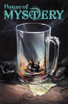 House of Mystery Nº 42. Vertigo. "Ultimo número. ¿Qué le ha pasado a la Casa del Misterio? La leyenda habla de un lugar mágico en dónde seres de muchos mundos se encontraban para compartir sus historias, donde el precio de un trago era el de un cuento bien contado. Ahora, muchos años después, tres viajeros llegan a las ruinas de ese legendario establecimiento, abandonado desde hace mucho tiempo. ¿Cómo terminará esta historia? Tres muy diferentes versiones de ese misterio serán contadas, pero ¿cuál es la verdadera? Descúbranlo en Tres para el camino, un tríptico de relatos firmados por Matthew Sturges, Bill Willingham y Steven T. Seagle (guiones), Luca Rossi, José Marzán Jr. y Teddy Kristiansen (dibujos); y Esao Andrews (portada). Presentando el reencuentro del equipo creativo de House of Secrets: Seagle y Kristiansen".