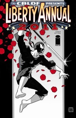 CBLDF Liberty Annual 2011. "El legendario editor Bob Schreck logró reunir a una línea de verdaderas primeras figuras del cómic para ponerle el pecho a las balas censoras con 48 poderosas páginas de nuevas historias sobre la defensa de los derechos de los autores. Todo lo recaudado por esta revista beneficiará las labores del Comic Book Legal Defense Fund (CBLDF) en lo que hace a su trabajo sobre la Primera Enmienda constitucional de los EE.UU. Una lucha que el CBLDF viene llevando adelante desde hace 25 años". Por Matt Wagner, J. Michael Straczynski, Kazim Ali, Dara Naraghi, J.H. Williams III, Mark Waid, Carla Speed McNeil, AJ Lieberman, Michael Bramley, Steve Niles, Brandon Montclare, Judd Winick, Richard Starkings, Kevin Sacco, Craig Thompson, Chris Mitten, Jeff Lemire, Riley Rossmo, Frank Quitely, Shane Davis, Fred Hembeck, Michael Montenat, Jack Purcell, Jo'lle Jones, Greg Land, Greg Horn, Thiago Micalopulos, Rodney Ramos, Dustin Nguyen, Dave Cooper, Ivan Reis y Shaky Kane. Portadas de John Cassaday y Matt Wagner.