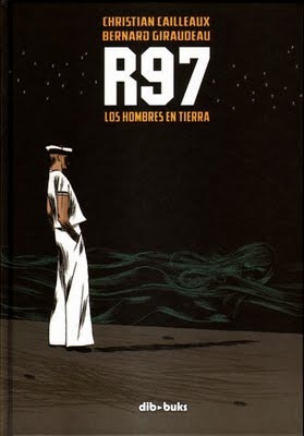 R-97. Los hombres en tierra. Dib-Buks. "Théo es un joven marinero recién salido de la escuela. Se prepara a zarpar por primera vez con el buque de guerra Jeanne d´Arc para un intenso viaje alrededor del mundo. No son tiempos de guerra y él es mecánico, pasará la mayoría de su tiempo entre las máquinas. Pero seguiremos a Théo a plena luz, porque estamos en presencia de una historia de aprendizaje. Vemos a Théo crecer y cambiar con cada etapa del navío. El joven de 17 años aprende a vivir con sus compañeros marineros y se maravilla con la mar, impetuosa y exigente. Tiene que respetarla ya que dicta su día a día. La mar le deja en las tierras más asombrosas del mundo: Kobe, Colombo, Honolulu, Valparaíso... donde descubre la vida en los puertos, en el desierto o en las ciudades abarrotadas. Allí también conoce las mujeres por primera vez. Pero siempre quiere volver a ella, la mar, que le lleva hacia nuevos horizontes. R97 cuenta la primera campaña de un joven marinero. El esquema narrativo es muy eficaz con su modo de alternar entre la vida a bordo y los momentos en tierra. Los autores juegan con esta dualidad donde los hombres forman una sola entidad con la máquina, enteramente a su servicio, para luego volver a ser unos individuos enfrentados con sus destinos en cada escala en tierra. El relato sigue a Théo, que vivirá un profundo cambio en su vida con cada escala. Con firmeza, algo de humor y mucho cariño, los autores consiguen que su personaje nos resulte entrañable cuando se confronta a sus ideales, a sus propias dudas. Christian Cailleaux prioriza los ambientes en lugar de los detalles técnicos. Desde las primeras páginas descubrimos un dibujo depurado y sin embargo lleno de líneas donde se privilegia lo esencial, buscando en cada viñeta un momento único donde se da libertad a la imaginación del lector. Un magnifico relato de marineros, navegando entre mujeres y aventuras. También es una invitación al viaje y a compartir todos estos puertos inolvidables para el viajero". Por Bernard Giraudeau (guión) y Christian Cailleaux (dibujos).