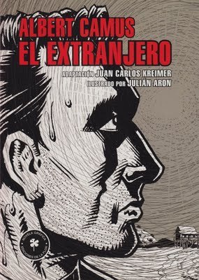 El extranjero. Ediciones de la Flor. "En adaptación de Juan Carlos Kreimer e ilustrada por Julián Aron, la clásica novela de Albert Camus aparece en su versión gráfica, que conserva y hasta aumenta su fuerza. Con un prólogo de Camus a la edición del libro en los EE.UU.".