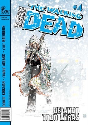 The Walking Dead Nº 4. "Luego del sorprendente final del capítulo anterior, el grupo de sobrevivientes se dirige a las congeladas rutas, a bordo de la mini-van de Dale. En el camino se cruzan con nuevos personajes, que se suman a sus filas. Mientras tanto, Lori tiene un secreto que compartir con Rick... Un barrio cerrado parece ser el milagro que estaban esperando. Casas vacías, comida en las alacenas. La idea de no dormir más en la mini-van, sino en una cama, no les deja ver que algo siniestro se esconde en este pueblo... Esta edición, que recopila las revistas 7 y 8 de los EE.UU., ya está disponible en kioscos de diarios y comiquerías".