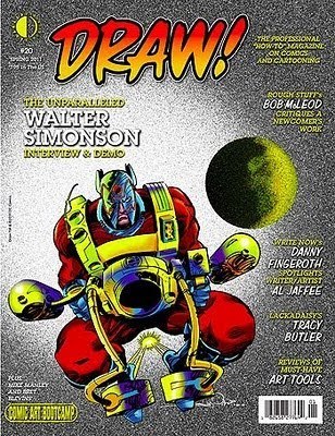 Draw! Nº20. "La revista profesional para saber cómo hacer las cosas en el terreno de los cómics y la animación, tiene acceso sin precedentes al detrás de escena del icono de los cómics Walter Simonson, ya que el artista nos lleva a su estudio para una entrevista y demostración de su proceso creativo. Además, el entintador profesional y ex editor de Rough Stuff, Bob McLeod, presenta otra entrega de su sección Rough Critiques sobre el trabajo de un nuevo talento; mientras el ex editor de Write Now!, Danny Fingeroth, presenta su columna regular dedicada a los mejores guionistas/dibujantes de la industria, en esta ocasión dedicada a la estrella de Mad: Al Jaffee. Además, una entrevista con Tracy Butler, artista integral de la webcomic devenida novela gráfica Lackadaisy, sobre su estilo inspirado en la animación clásica y en cómo ha venido produciendo su tira y su trabajo simultáneo para la industria de los juegos. Después, Jamar Nicholas presenta otra columna de Crusty Critic, poniéndote al día sobre las mejores herramientas artísticas y tecnológicas que están disponibles en el mercado; mientras Mike Manley y Bret Blevins arman otra entrega de las indispensables lecciones del Art Bootcamp, ideales para artistas nuevos y experimentados. Y además, links de internet, críticas de revistas y libros; y mucho más. Editada por Mike Manley". Un adelanto puede ser visto en: http://www.twomorrows.com/media/Draw20Preview.pdf .