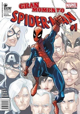 Spider-Man Nº 1. "Peter Parker no sólo tiene los asombrosos poderes de un hombre araña: También es un joven con mala suerte. Siempre le puso su mejor humor, incluso cuando se enfrentó al temperamento de su jefe, el editor J. Jonah Jameson, quien odiaba a Spider-Man con todo su ser. Cuando su Tía May estuvo al borde de la muerte, Peter canjeó el amor de su esposa, Mary Jane, por la salud de la mujer que lo crió. La historia se reescribió, y Peter jamás estuvo casado. La 'suerte Parker' pareció llegar a su punto más bajo cuando fue despedido como fotógrafo del Daily Bugle, y J.J. Jameson logró convertirse en el alcalde de New York. Con Osborn preso, una nueva novia y una membresía en los Avengers, ¿llegó el gran momento de Peter Parker?".