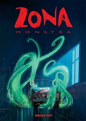 Zona Vol. 7: Zona Monstra. Associação Cultural Tentáculo. "El proyecto Zona fue fundado en 2009 y tiene como objetivo principal el desarrollo y la divulgación de la historieta y la ilustración en Portugal. El proyecto se encuentra abierto a participaciones de otras expresiones artísticas, como la fotografía y la prosa, por ejemplo. Este proyecto ha contado con una amplia lista de colaboraciones de autores portugueses; y también con participaciones internacionales oriundas del Brasil, la Argentina, los EE.UU. y España. Uno de los objetivos principales es el de dar a conocer nuevos autores, brindando una plataforma que permita dar mayor visibilización a sus trabajos. Zona está editada por André Oliveira y Fil, a través de la Associação Cultural Tentáculo, una asociación cultural con el objetivo de apoyar este y otros proyectos, oficializando así un caso exitoso de colaboración entre autores". La presente edición está integramente dedicada a los Monstruos, con 92 páginas a color a cargo de Diana David, Joana Afonso, Filipe Andrade, João Amaral, João Raz, Fil, Hugo Teixeira, Gabriel Martins, André Caetano, André Oliveira, J. Coelho, Filipe Duarte, César Évora, Manuel Alves, João Sousa, J. B. Martins, Carla Rodrigues, Rui Ferreira, Pedro Carvalho, Ricardo Correia, André Lima Araújo, Daniel "Pez!" Lopez, Luís Lourenço Lopes, Rui Alex, Ricardo Reis, Tiago Pimentel, Locato e Rodolfo Buscaglia, Miguel Santos, Bruno Bispo y Victor Freundt. Portada de Filipe Andrade.