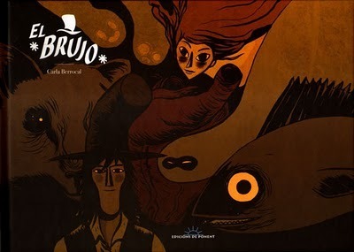 El brujo. Ediciones De Ponent. "Porfirio Pillampel es un brujo, sí, pero tras la muerte de su esposa no es el mismo. Aunque tenga poderes para hacer lo que quiera, aparentemente ya nada tiene sentido. Dedicido a abandonar, empieza un camino en busca de la muerte, en el que se cruzará con diferentes personas y dioses que antes de llegar a su meta, le harán reflexionar sobre su vida. Ambientado en la isla de Chiloé, una pequeña y remota pieza de tierra frente a las costas de Chile, la autora nos sumerge dentro de las costumbres y mitologías propias de un pueblo que ha permanecido siempre aparte del tiempo, descubriéndonos un paisaje solitario y extrañamente melancólico, a veces feliz, a veces desolador... El brujo es una obra de experimentación narrativa y plástica, un ejercicio de análisis sobre las posibilidades de la historieta, un divertido juego en el que saborearás la historia de un pequeño hombre, en una pequeña isla, pero de una gran epopeya que es la propia existencia. El brujo no es una historia para ser solamente leída. El brujo es una obra también para ser mirada, escuchada, olida, palpada y gustada. El brujo es un canto a la vida incluso cuando la vida es un peso imposible de soportar. El brujo es un homenaje maravilloso al milagro de la existencia. Y un regalo para los seis sentidos del alma". Por Carla Berrocal.
