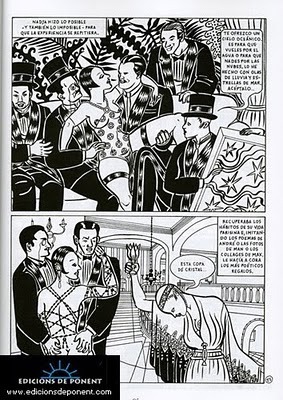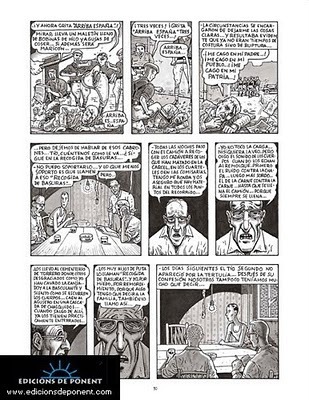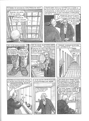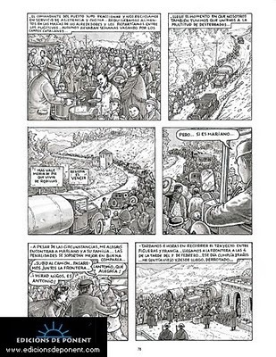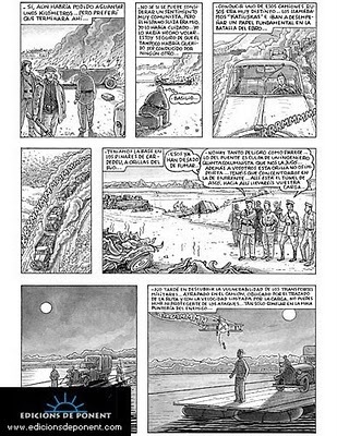 La novela me liberaba de la dependencia de un dibujante. Además, todos los testimonios y documentos sobre la vida de mi padre eran verbales. La transcripción literaria se antojaba más cómoda. Pero conozco la eficacia narrativa del cómic. En este caso iba a proporcionar una reconstrucción histórica de ambientes y situaciones más eficaz que cualquier descripción con palabras. Me permitía establecer un diálogo -a menudo complementariedad, a veces contraste- entre los cartuchos que contienen el monólogo interior y las imágenes. Y descubrí la eficacia de las metáforas visuales para reflejar las tensiones -quizá contradicciones- del mundo interior del protagonista.