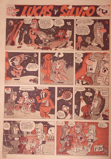 Impresoen rotograbado, Mella incluíaun suplemento con algunas páginas impresas a cuatro colores. Yjustamente aquí, Juan José comenzó a darse a conocer comohistorietista. Su primer trabajo fue Lucas y Silvio, historia deciencia-ficción protagonizada por el viejo y el niño del título.El pequeño Silvio, con sus espejuelos y todo, estaba inspirado enquien llegaría a ser uno de los cantautores más importantes de laNuevaTrova,Silvio Rodríguez, por entonces un aprendiz de caricaturista quevenía trabajando con Virgilio.