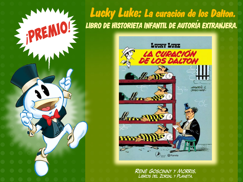 Libro de historieta infantil de autoría extranjera: Lucky Luke: La curación de los Dalton, de René Goscinny y Morris (Libros del Zorzal y Editorial Planeta). Fundamento del Jurado: Publicada por primera vez en 1975, La curación de los Dalton es una de las mejores aventuras del personaje creado por Morris en 1946. La edición argentina es exquisita, cuida aspectos de la traducción que no cuidaba la edición española, y les ofrece a los lectores de hoy la posibilidad de entrar por la puerta grande a este universo en el que los franceses y belgas se ríen de las convenciones del clásico western norteamericano. Los más chicos nunca consumieron western clásico y no conocen esas convenciones, pero Lucky Luke igual les arranca una sonrisa.