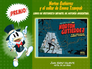Libro de historieta infantil de autoría argentina: Norton Gutiérrez y el collar de Emma Tzampak, de Juan Sáenz Valiente (Hotel de las Ideas). Fundamento del Jurado: Entre la acción y la comedia, Sáenz Valiente crea un clima festivo, de sano descontrol, mientras hace evolucionar a casi todos sus personajes, ofrece revelaciones impactantes, reflexiones, cuestionamientos y esas cosas que hacen un poco más impredecible el accionar tanto de los buenos como de los malos. Norton Gutiérrez y el collar de Emma Tzampak es un cómic de aventuras para todo público, pero detrás de su redondez oculta un cierto filo, una mirada un poco más ácida, o más escéptica, que le agrega una capa más de complejidad a la obra, y obviamente la enriquece.