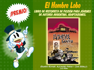 Adaptaciones: El hombre Lobo, de Alejandro Farías y Juan Bobillo, sobre texto de Eduardo Rovner (Loco Rabia). Fundamento del Jurado: Alejandro Farías y Juan Bobillo adaptan al cómic una nueva pieza teatral del dramaturgo Eduardo Rovner. Farías y Bobillo logran que El Hombre Lobo se lea perfectamente como un relato pensado para el lenguaje de la historieta. No hace ruido, nunca te planteás que estás leyendo una obra creada para otro medio y luego transplantada al que nos gusta a nosotros. Por eso se disfruta tanto.