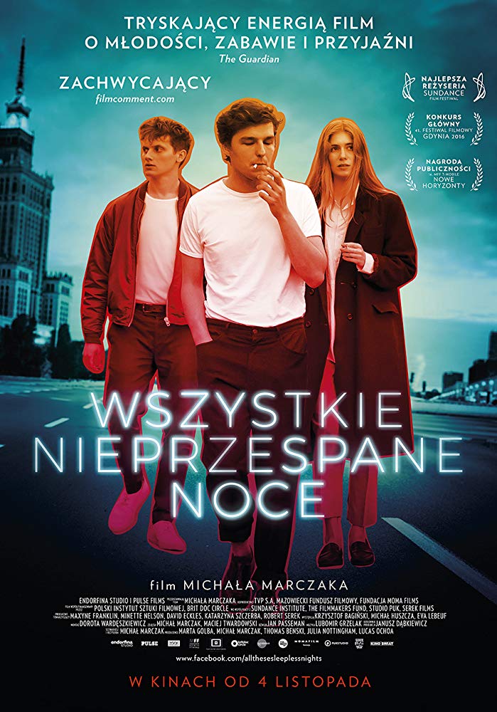 Todas esas noches sin dormir (Wszystkie nieprzespane noce, 2016), de Michal Marczak: El film nos sumerge en la vida nocturna de Varsovia, dónde el protagonista busca divertirse y sacarle el jugo a la vida, y en efecto se enamora de la ex de su mejor amigo. Electrizante retrato de la joven generación actual. Premio por la mejor dirección en el Sundance Film Festival 2016. Protagonizada por Krzysztof Baginski, Michal Huszcza y Eva Lebuef.