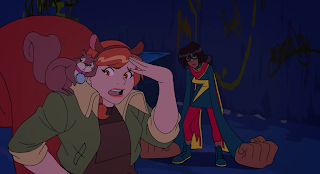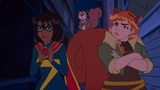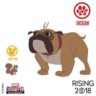Lockjaw y Tippy Toe: Dos compañeros adorables y heroicos: Lockjaw es el perro confiable de Kamala que puede teletransportarse, y Tippy Toe es la cómplice de Doreen y su mejor amiga ardilla. Voces de Dee Bradley Baker.