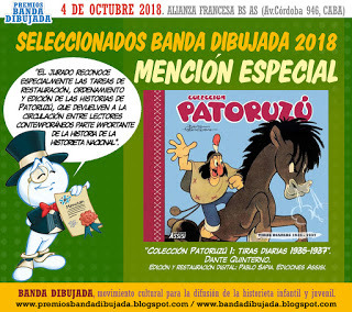 Quinterno, Dante. Colección Patoruzú 1: tiras diarias 1935 – 1937 (Ediciones Assisi), con edición y restauración digital a cargo de Pablo Sapia. El jurado reconoce especialmente las tareas de restauración, ordenamiento y edición de las historias de Patoruzú, que devuelven a la circulación entre lectores contemporáneos parte importante de la historia de la historieta nacional.