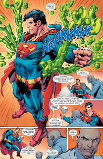 Un número que, aun inserto (lo justo y necesario) en la actual cronología interna del universo superheroico, se la banca (y re-banca) como una unidad de lectura completa, cerrada y redonda. Mediante pequeñas piezas que van encastrando entre sí (desordenada pero naturalmente), el sentido real del relato se nos revela cuando el rompecabezas termina de armarse entre nuestras manos. Por debajo de los avatares que nos vinieron contando las distintas tramas, fluye el estudio sobre la identidad del superhéroe más importante del mundo. Una identidad compleja, construida durante 80 años de idas y venidas, de agachadas y levantadas.