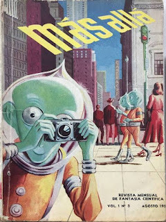 Todosy todas tienen algo en común. Han sido lectores y coleccionistas deMás allá, primera revista argentina dedicada a la divulgacióncientífica y la ciencia-ficción. Entre junio de 1953 y junio de1957, se dejaron habitar por esas páginas abiertas a la fantasía,la imaginación y la especulación futurista. Leyeron a Bradbury,Asimov, Sturgeon, Vonnegut, Oesterheld y Varsavsky, entre muchosotros, con ojos nuevos y ávidos de conocimiento. Más de uno, másde una, todavía recuerda con vívida emoción el encuentrodefinitorio con El día de los Trífidos, novela de John Wyndham quese presentó como plato fuerte del primer número. La gran mayoría,también, interactuó a través del correo de lectores, llegando aformar parte del club de fanáticos aglutinados alrededor de la hoy mítica publicación de Editorial Abril.