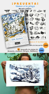 (Información de prensa) Vamos a la playa, primera novela gráfica de Azul Blaseotto y editada por Tren En Movimiento Ediciones, saldrá a la venta en librerías de Buenos Aires en marzo 2018. Pero hasta el 31 de diciembre pueden conseguirla con un 20 % de descuento: ¡¡el libro (autografiado) a sólo $AR 200!! Y por $AR 500: ¡¡libro serigrafía!! ( bicromía s/ chambrill 240 gms; 35x50 cms; tirada de 40). Se paga con todas las tarjetas desde cualquier lugar del mundo en MERCADO PAGO: http://mpago.la/N83V y http://mpago.la/ij2C respectivamente. (Para envíos al interior del país y al exterior se cobra un plus).
