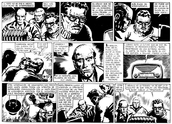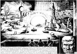 Una vez definido el liderazgo, se hizo imprescindible señalar al enemigo. Y en una corta secuencia que fue de diciembre de 1958 a enero de 1959, Oesterheld y Solano López enquistan a la base alienígena de los Ellos en la Plaza de los dos Congresos, centro mismo de la representación física del poder popular. Contundente alegoría gráfica del modelo que marcará a sangre y fuego a la Argentina futura, donde el enemigo también estará dentro de las instituciones que dirán representar al pueblo.