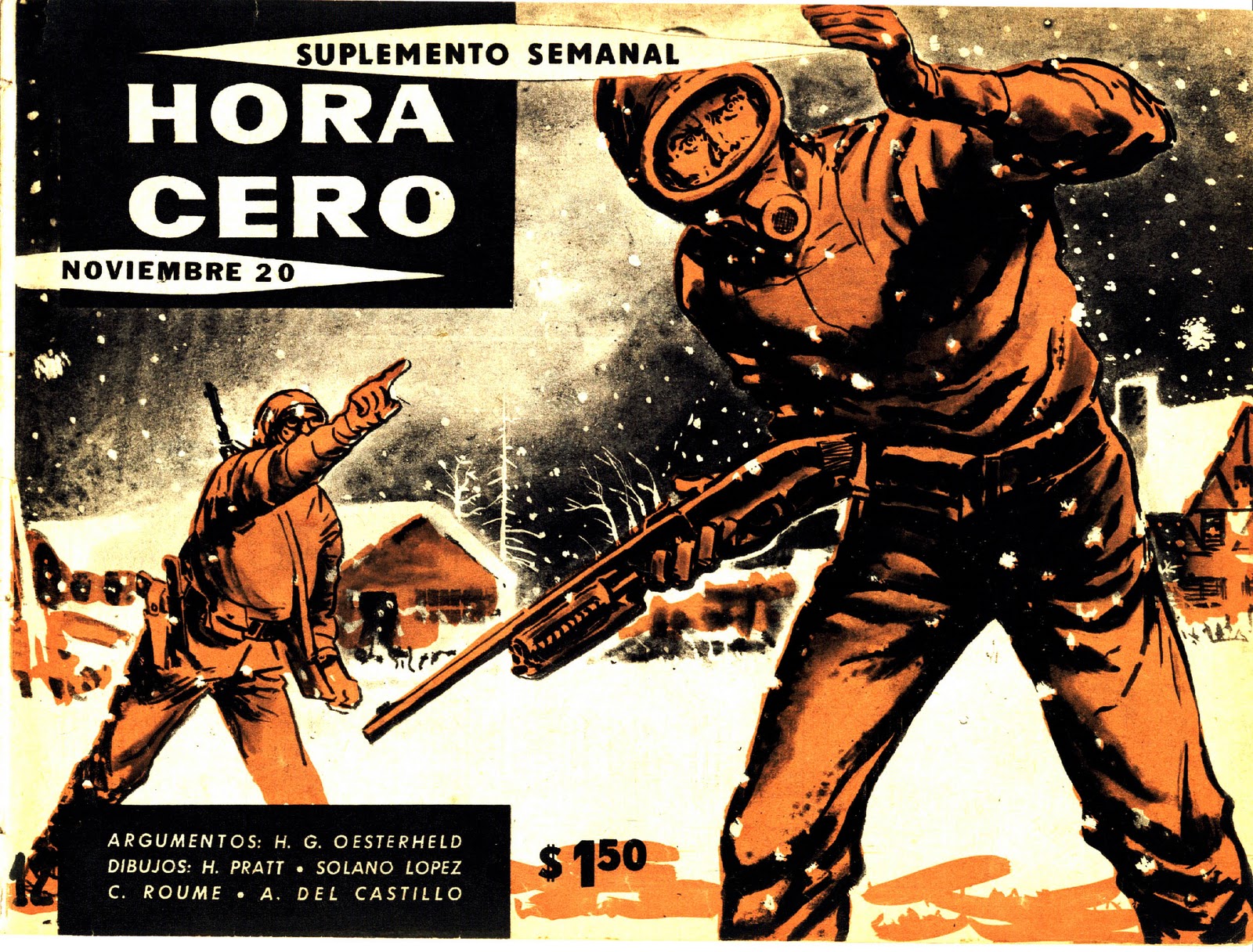 El tiempo, o las distintas nociones que puedan tenerse de él, es una herramienta narrativa que Héctor Germán Oesterheld y Francisco Solano López ubicaron en el corazón de El Eternauta, la historieta que comenzaron a serializar en septiembre de 1957, con el lanzamiento de la revista Hora Cero Semanal. Juan Salvo, el protagonista que devendrá ese peregrino de la eternidad que será bautizado como El Eternauta por un filósofo del futuro, carga sobre sus hombros el paso (y el peso) del tiempo. Cuando se corporiza en la silla del por entonces anónimo guionista de historietas, que con el tiempo se asumirá como el propio Oesterheld, la peripecia particular de Juan Salvo es pasado. Sin embargo, para el guionista que escucha impávido las alternancias del relato, todo se refiere a su futuro. Más allá del juego de palabras y la tensión que logra articular la historieta, este manejo conceptual del tiempo eclosiona sobre el final, cuando protagonistas y lectores descubrimos que aquella pesadilla a la que hemos asistido por más de 300 páginas no ocurrió, sino que acontecerá dentro de cuatro años.