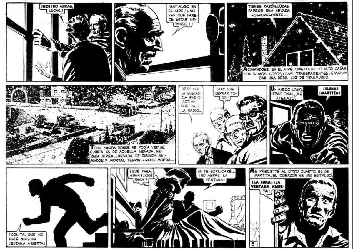 Esta vuelta de tuerca, además de cerrar circularmente la aventura con un pico dramático, termina de quebrar la lógica temporal y abre un paréntesis que permite avistar, como si del aleph borgeano se tratara, todo lo que pasó, todo lo que está pasando y todo lo que pasará, simultáneamente. Y en vez de expresarlo como un trauma irresuelto, Oesterheld y Solano López deciden mostrarlo como una oportunidad única, a la espera de ser utilizada. Esa bisagra entre lo que fue y lo que será, que no es otra cosa que el presente continuo, es el engranaje maestro de la arquitectura narrativa denominada El Eternauta. Desde ese espacio atemporal (vaya paradoja), los autores nos invitan a compartir algunas preguntas sin respuestas aparentes. O mejor aún, con varias respuestas posibles.