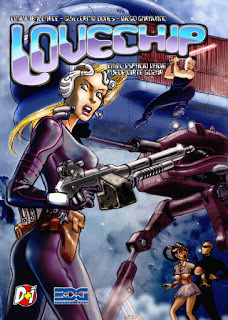 Lovechip. En el espacio nadie puede oírte gozar. D+i ediciones. De Emilio Balcarce, el mismo guionista de la trilogía Tudo bem, publicada por esta misma editorial, llega Lovechip: su primera ópera cósmica sobre una humana enamorada de un robot. Algo no tan imposible, si consideramos que recientemente un empresario japonés se casó con su muñeca sexual. Jaden Vark es una piloto de combate, una mercenaria intergaláctica que lucha para el mejor postor, y Shake, su robot, es su copiloto. Durante una misión, su amante de acero es destruido. Sólo logra rescatar el chip de su memoria, por lo que emprenderá una desesperada búsqueda a través de los planetas de un modelo igual, para implantárselo y recuperar a su amor perdido. En su aventura a través de extraños y peligrosos mundos conocerá a la versión masculina de ella: Yoga, un camionero espacial japonés que tiene una geisha robótica a su servicio. Los polos opuestos se atraen, pero en este caso son polos semejantes: los dos son amantes de robots. ¿Que sucederá entre ellos? Arte de Guillermo Donés.