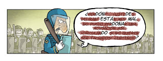 El ejemplo que más claro grafica la recodificación ejercida por la realidad instaurada en marzo de 1976 sobre la ficción generada en 1957, sin embargo, es la marcha del ejército de la resistencia frente a las instalaciones de la Escuela Superior de Mecánica de la Armada (ESMA). En los ’50, la misma funcionaba como un dato de color local que le agregaba mayor dramatismo a la sensación de realidad que construía la historieta. ¿Puede seguir leyéndosela de la misma manera, conociendo los hechos que acaecieron después, tanto a la Argentina como a Oesterheld?