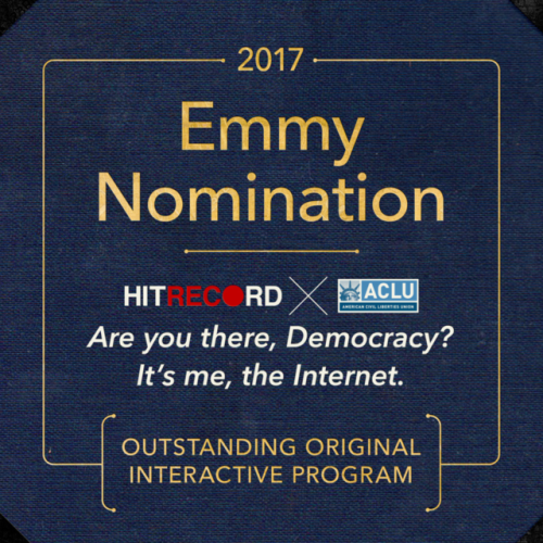 So proud of the HITRECORD community for being nominated for a 2017 Emmy Award. Honored to share it w/ the ACLU.