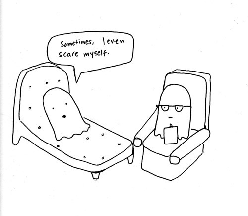 tesslucia (hitRECord Guest Curator) Featured Comment: even ghosts scare themselves sometimes… lovely drawing by chloe04