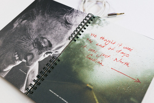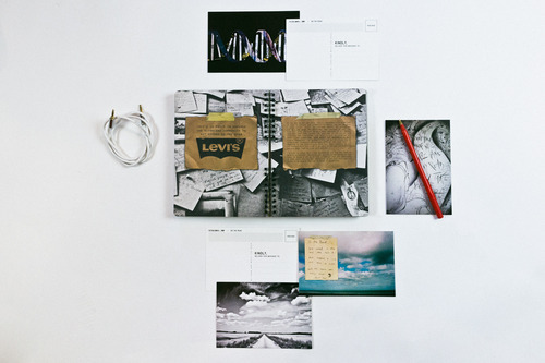 This limited-edition (and now unfortunately sold out) book we made for hitRECord and Levi’s is one of my favorite pieces I’ve designed for print. It was bound journal-style, and came packaged with a trusty red pen, wrapped closed with an auxiliary headphones cable, and of course a road trip soundtrack download.