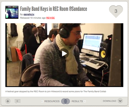 Just started going through some videos from the REC Room @ Sundance this weekend, check out this one of a festival goer named Aaron (I think?) that stopped by to join HitRECord and record some piano for humunkulus’s “Family Band” song.
