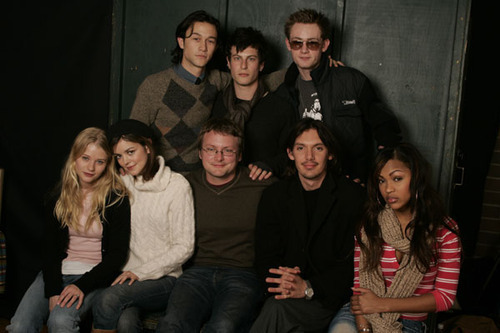 Brick director Rian Johnson (front, center) poses for a portrait with the film’s cast Emilie de Ravin, Nora Zehetner, Lukas Haas, Meagan Good, Joseph Gordon-Levitt, Noah Segan, and Matt O’Leary during the 2005 Sundance Film Festival. Brick premiered in the Dramatic Competition and went on to win the Festival’s Special Jury Prize for Originality of Vision.