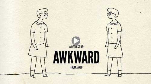 WRITERS: Let’s write more stories for this awkward character. Does she run into someone who looks identical to her or is she so self conscious she runs into herself all the time?!