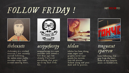 Now that we’ve updated the hitRECord Dashboard, users can see the full lists of RECorders they subscribe to. We thought it’d be fun to see who makes your Dashboard a better place with their records and recommends.
