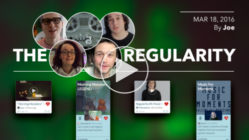 MORNING MONSTERS LEGEND : Create more character designs for the Morning Monster Legend. Please check out THIS UPDATE from MarinoShoO for more direction on these character designs. CONTRIBUTE HERE MUSIC FOR MOMENTS : Write a musical piece that represents intimacy. CONTRIBUTE HERE REGULARITY DIGEST : Cut together a video that shows the highlights from Regularity contributions that have come in during the past week. CONTRIBUTE HERE EVERYONE’S REGULARITY VIDEOS : You could recommend a record, highlight a challenge, or turn us on to a certain project we haven’t heard of. Just shoot a video and CONTRIBUTE HERE