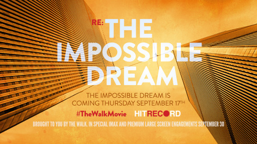 This “Impossible Dream" collaboration was inspired by a movie I’m in called “The Walk,” coming to theaters on September 30th. It’s a true story about Philippe Petit. His impossible dream was to hang a high wire between the two towers of the World Trade Center and walk across it. And, in 1974, with the help of his co-conspirators, he achieved this dream.