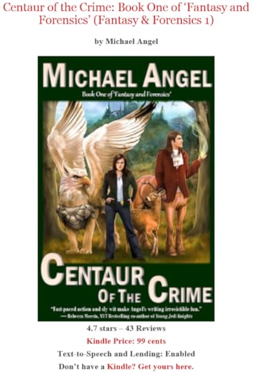 From the ‘I had to share’ department: Reader Bill Dickerson enjoyed reading Centaur, and added in his review, “Centaur of the Crime starts with a dead body and ends in a coronation.”