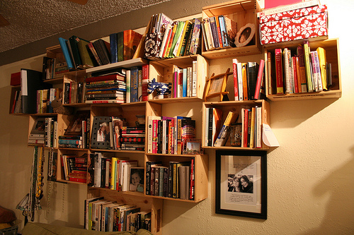 Alli shared her bookcase in the comment section of the bookcase post. Check it out, isn't it perfect? I want to do the same thing in my office!