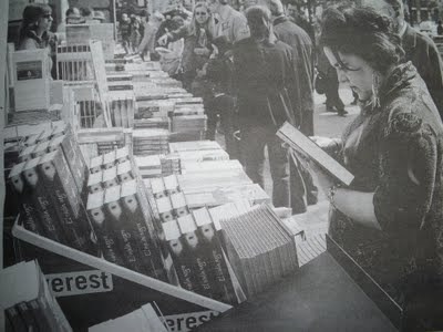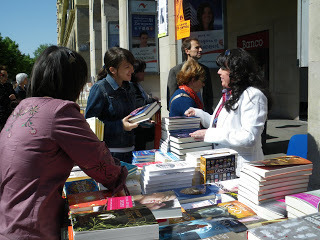 En el Periódico de Aragón de ayer, aparecía un artículo sobre el Día del libro en Zaragoza que se celebrará el día 17 con una foto muy curiosa del año pasado: ¡una lectora está examinando mi libro El Violín Negro, que también aparece en el expositor!