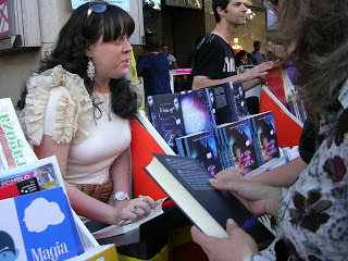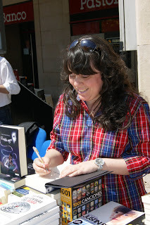 ¡Cual sería mi sorpresa cuando vi a Laura Gallego acercarse a la caseta donde yo estaba firmando!