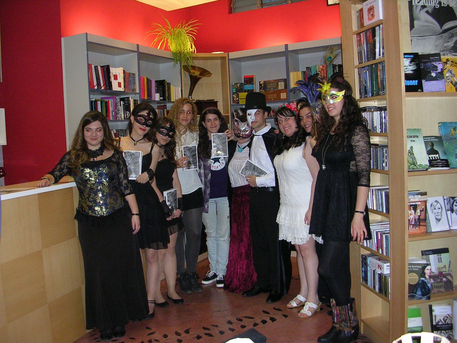 Los chicos del Club de lectura Carletes (vestidos de época y con máscaras!) y mis dos presentadoras, Eva Rubio (del blog Juvenil Romántica) y Victoria Álvarez (amiga escritora) hicieron que esta presentación fuera una de las más emotivas y especiales que he vivido.