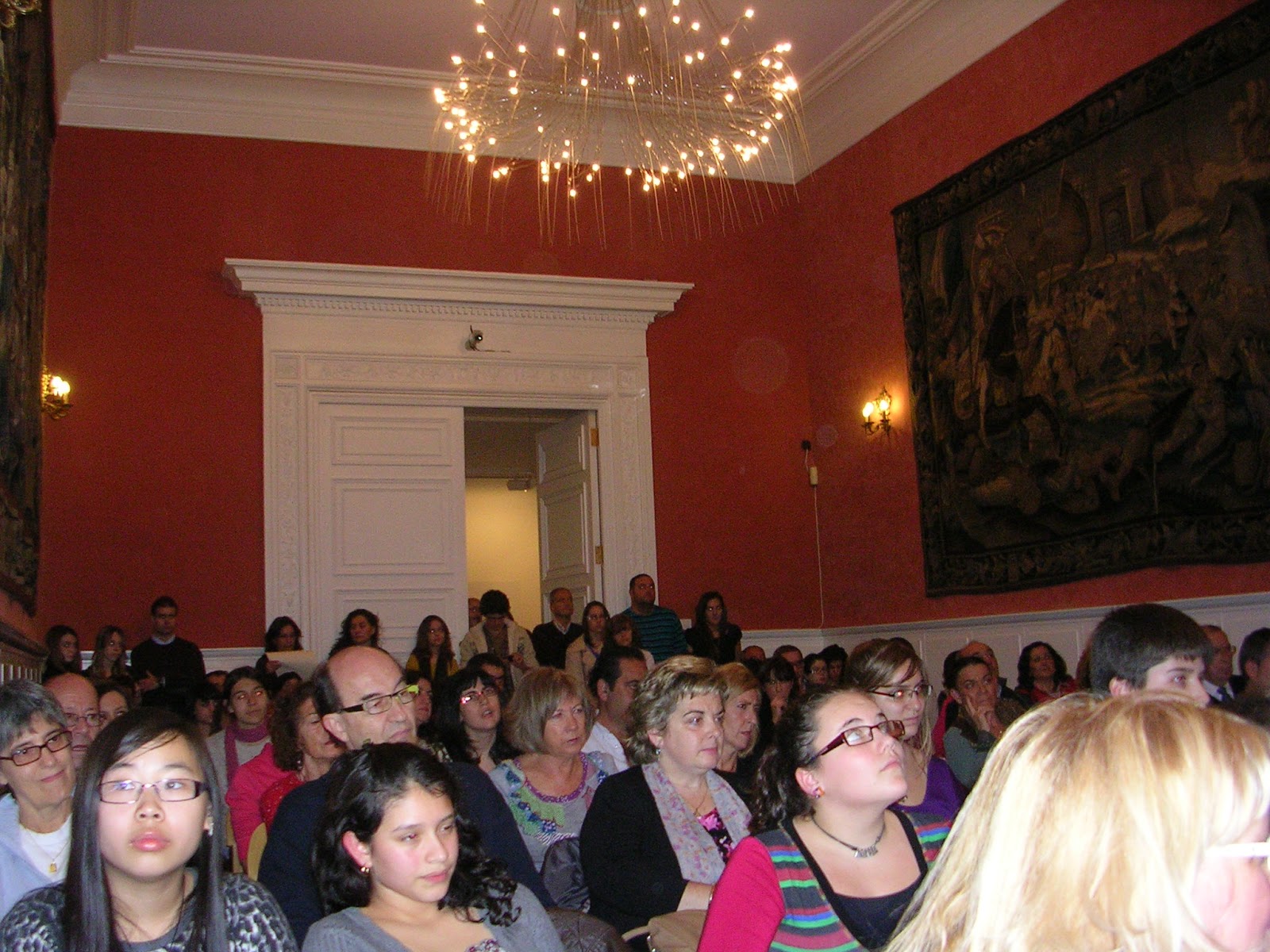 La foto fue tomada momentos antes de que la presentación tuviera lugar. Desde donde nos encontrábamos, una antesala previa, podía ver la impresionante cantidad de personas que abarrotaban la Sala de Música. Hubo más de 150 asistentes.