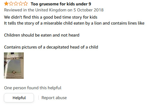 I came upon this Amazon review of my version of Hilaire Belloc’s Jim: for this reviewer the depiction of a severed head in Jim - was clearly unacceptable.