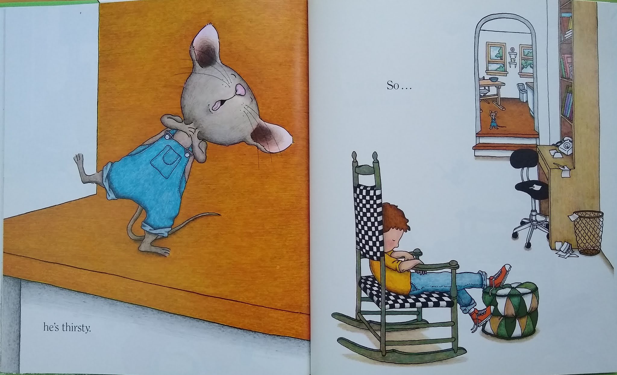 . . . . a glass of milk! The narrative leaves space for the reader to look closely at the pictures,and add depth, nuance and humour to the interpretation of the story.
