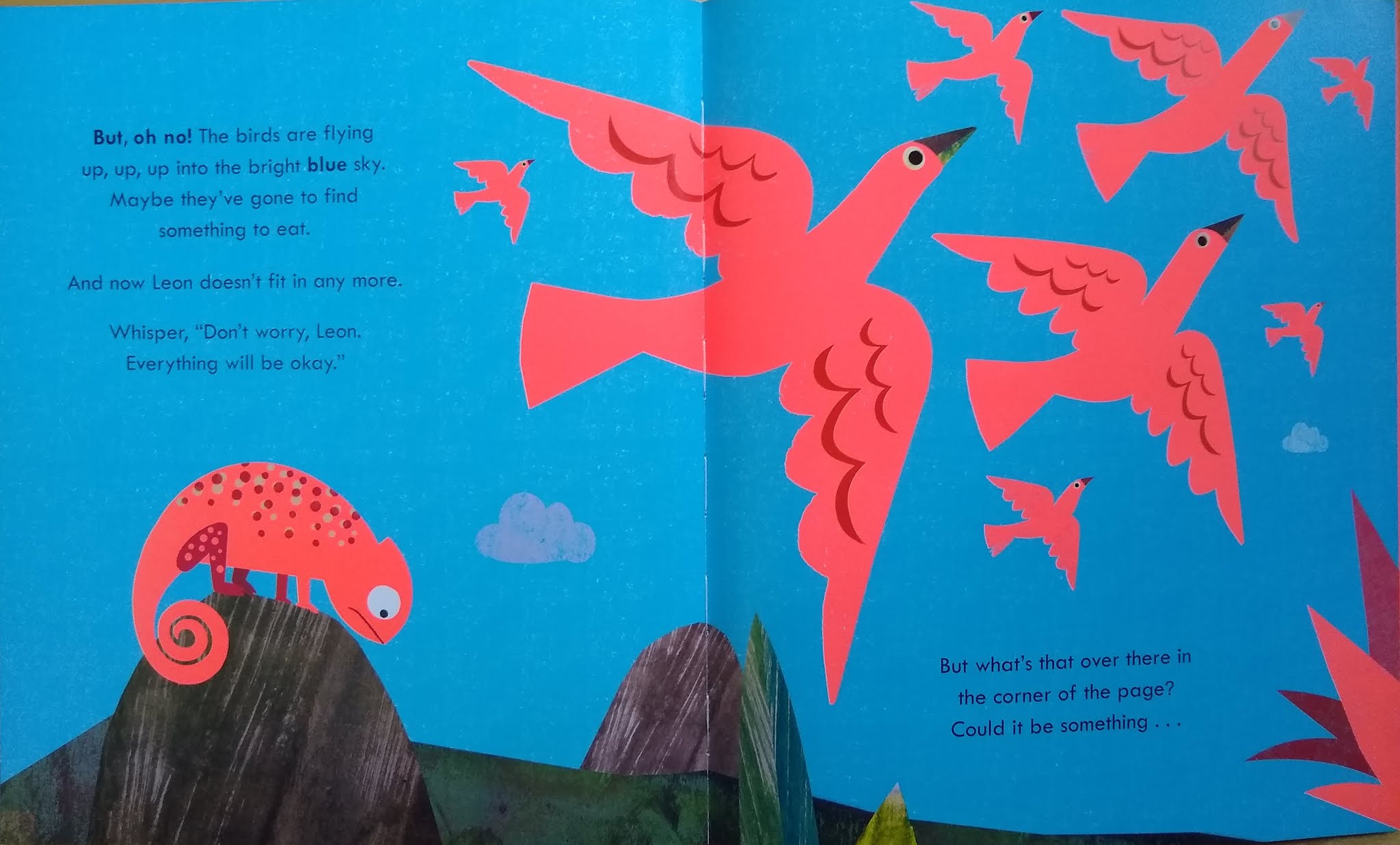 . . . but perhaps unexpectedly landing like this! In this spread, the reader can use the space left by the minimal words to imagine how rock