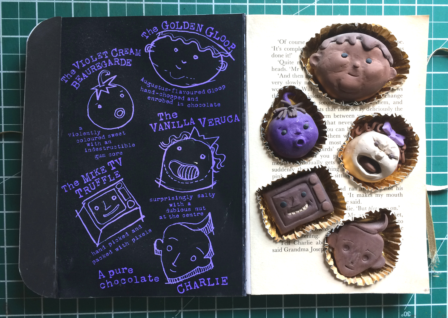 Here's my Chocolate Factory Chocolate Box, with the Willy Wonka Children immortalised in chocolate: