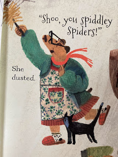 Like me, Old Bear is the one preparing a tree and decorating it for others now. She wants it all to be magical for the friends she invites. But she doesn’t want the spiders making her house untidy.