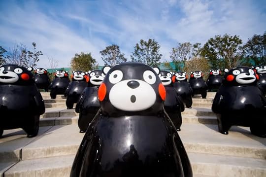 Kumamon statues in Kumamoto, Japan.To promote the new train line a black bear mascot was created in the form of 'Kumamon', now famous across the whole of Japan and now known world wide. When you visit Kumamoto you will want to include Kumamon Square on your tour of the city. If you visit during one of the designated times on the mascot's busy calendar, you can meet him!