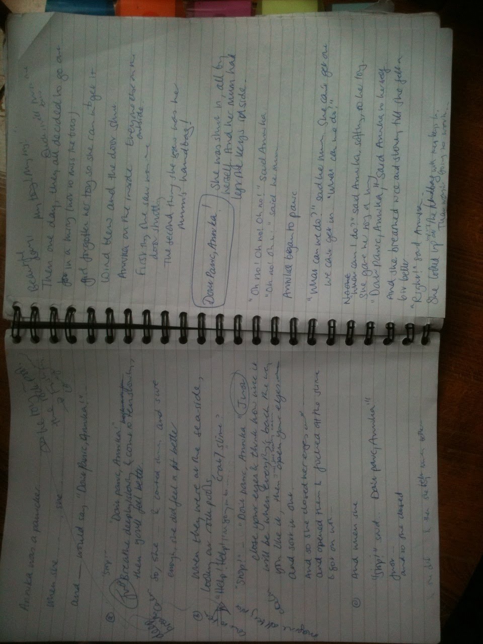 The very first notes for Don't Panic, Annika! (NB I didn't write them at a funny angle but blogger and I argued a lot this morning. And blogger won...)